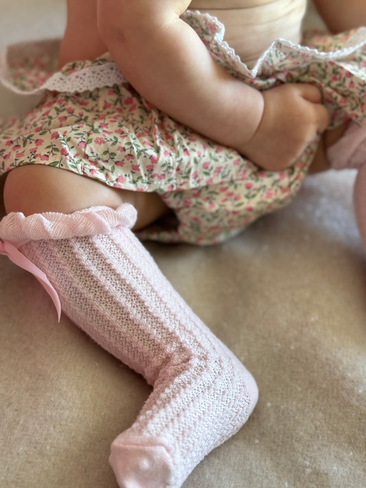 Bow Lace Knee-High Socks - White or Pink