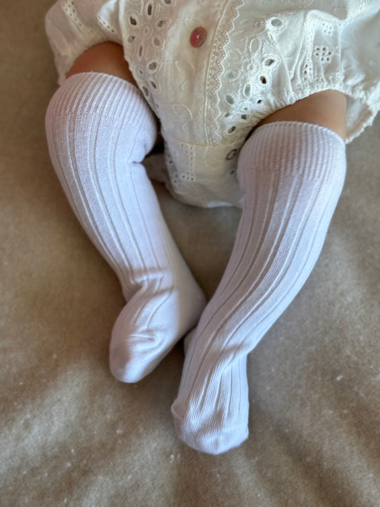 Cotton Rib Knee High Socks - White, Blue or Pink