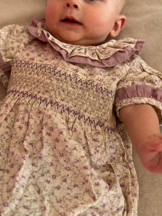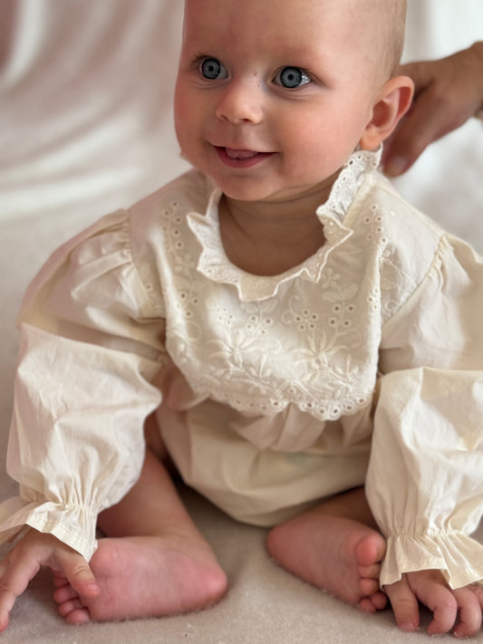 Daisy Embroidery Anglaise Frill Sleeve Romper - White